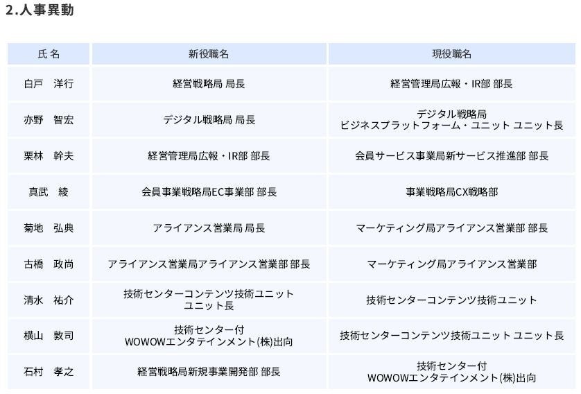 ・「会員サービス事業局」は、「コンテンツ事業戦略局」と改め、「コンテンツ戦略部」「メディアサービス部」「考査部」を管轄する。WOWOWの価値創出の源泉となるコンテンツ領域におけるIP拡大、サービスをまたいだコンテンツのありかたをとりまとめ、コンテンツ・ブランドの向上を図る。