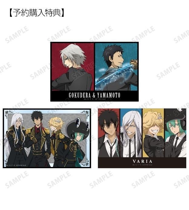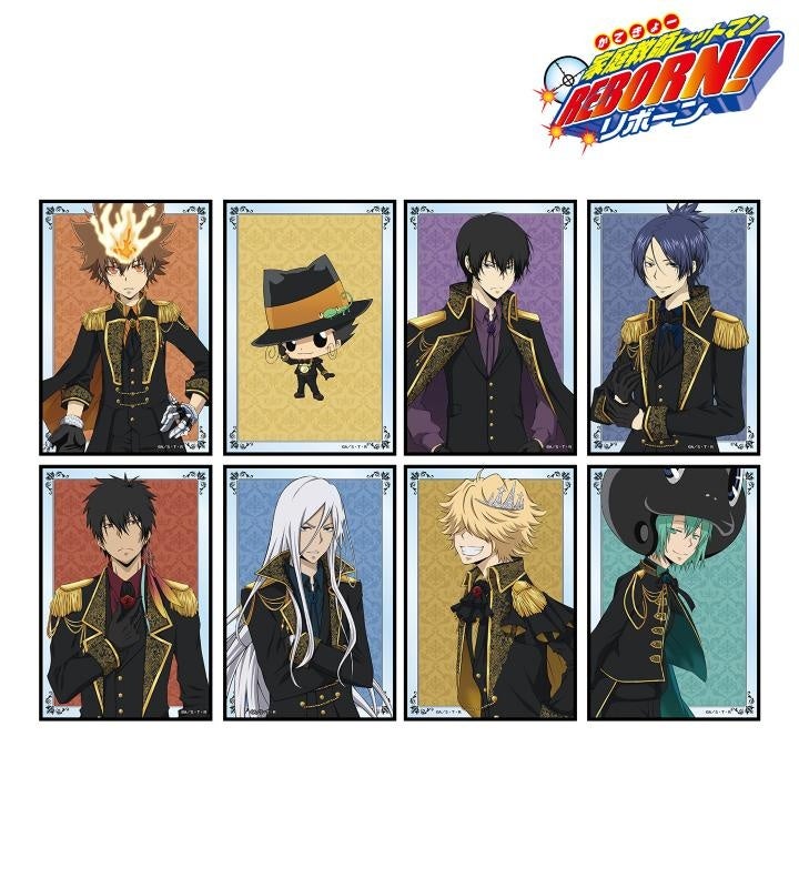 沢田 綱吉、リボーン、獄寺 隼人(10年後)、山本 武(10年後)、雲雀 恭弥(10年後)、六道 骸(10年後)、XANXUS(10年後)、スペルビ・スクアーロ(10年後)の描き下ろしイラストをクリアカードに仕上げました。