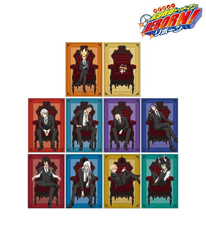沢田 綱吉、リボーン、雲雀 恭弥、六道 骸、XANXUS(10年後)、スペルビ・スクアーロ(10年後)、ベルフェゴール(10年後)、フランの描き下ろしイラストをクリアカードに仕上げました。