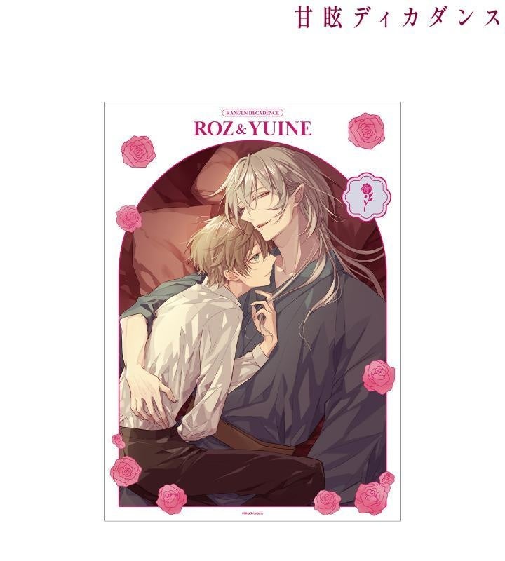 緋汰しっぷ先生描き下ろしイラストと原作イラストのロズ、ユイネをお花と宝石風の飾りと組み合わせ、A3サイズのマット加工されたポスターに仕上げました。