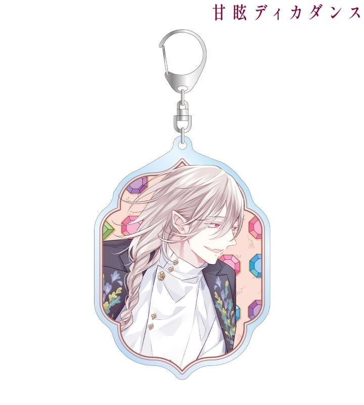 緋汰しっぷ先生描き下ろしイラストのロズ、ユイネをお花と宝石風の飾りと組み合わせ、BIGなアクリルキーホルダーに仕上げました。