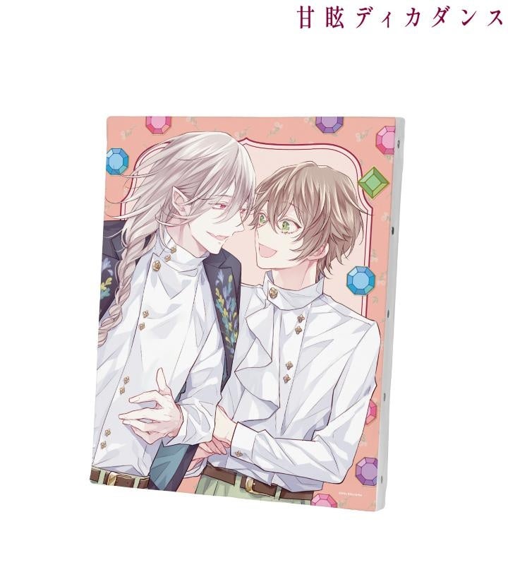 緋汰しっぷ先生描き下ろしイラストのロズ、ユイネをお花と宝石風の飾りと組み合わせ、キャンバスボードに仕上げました。