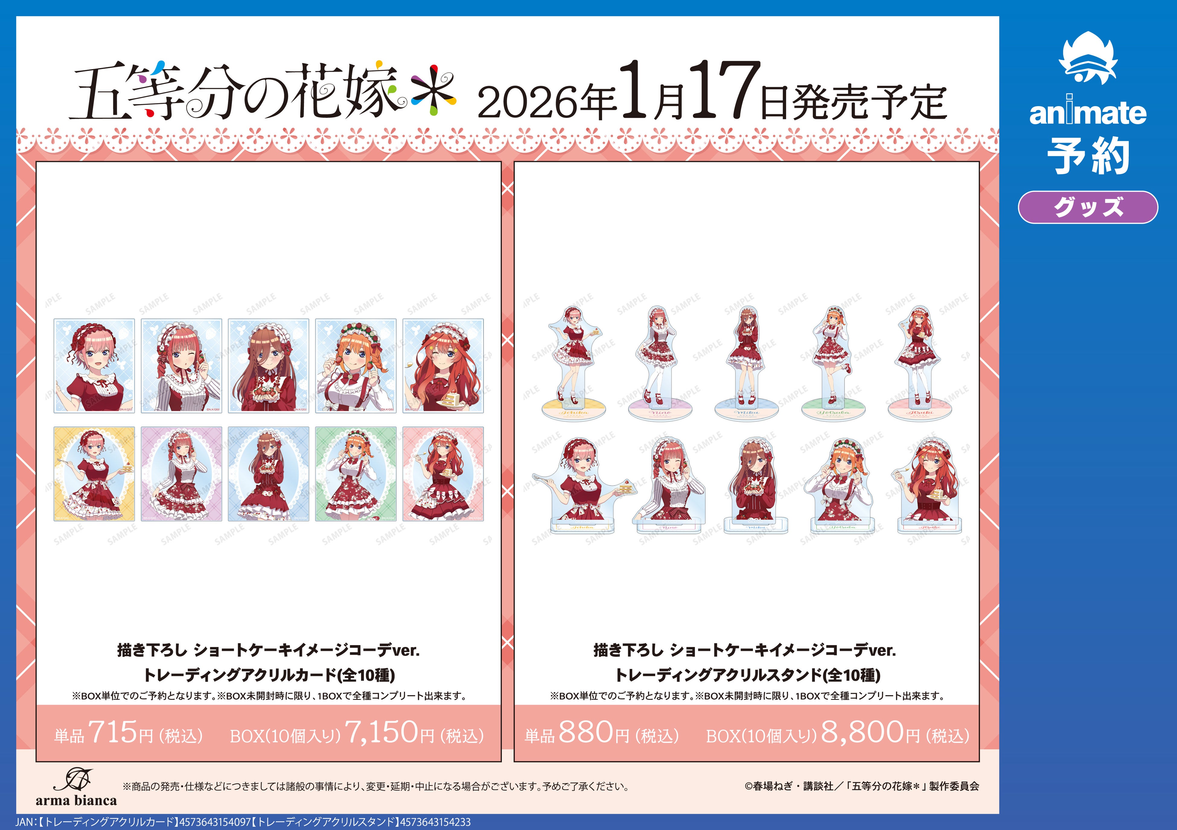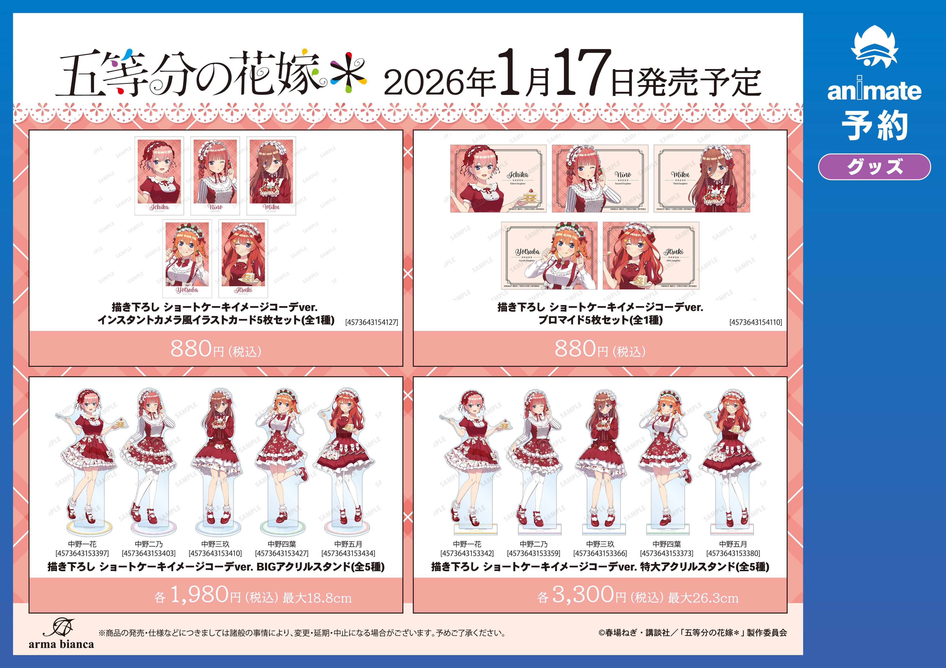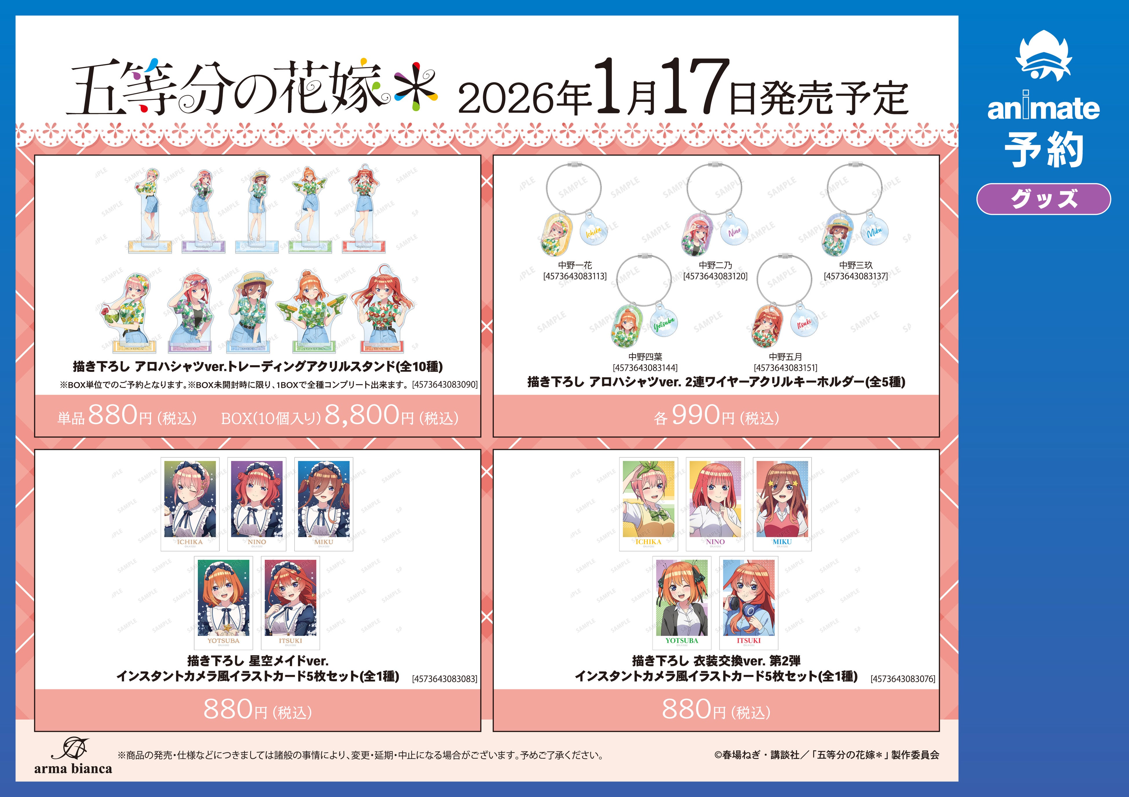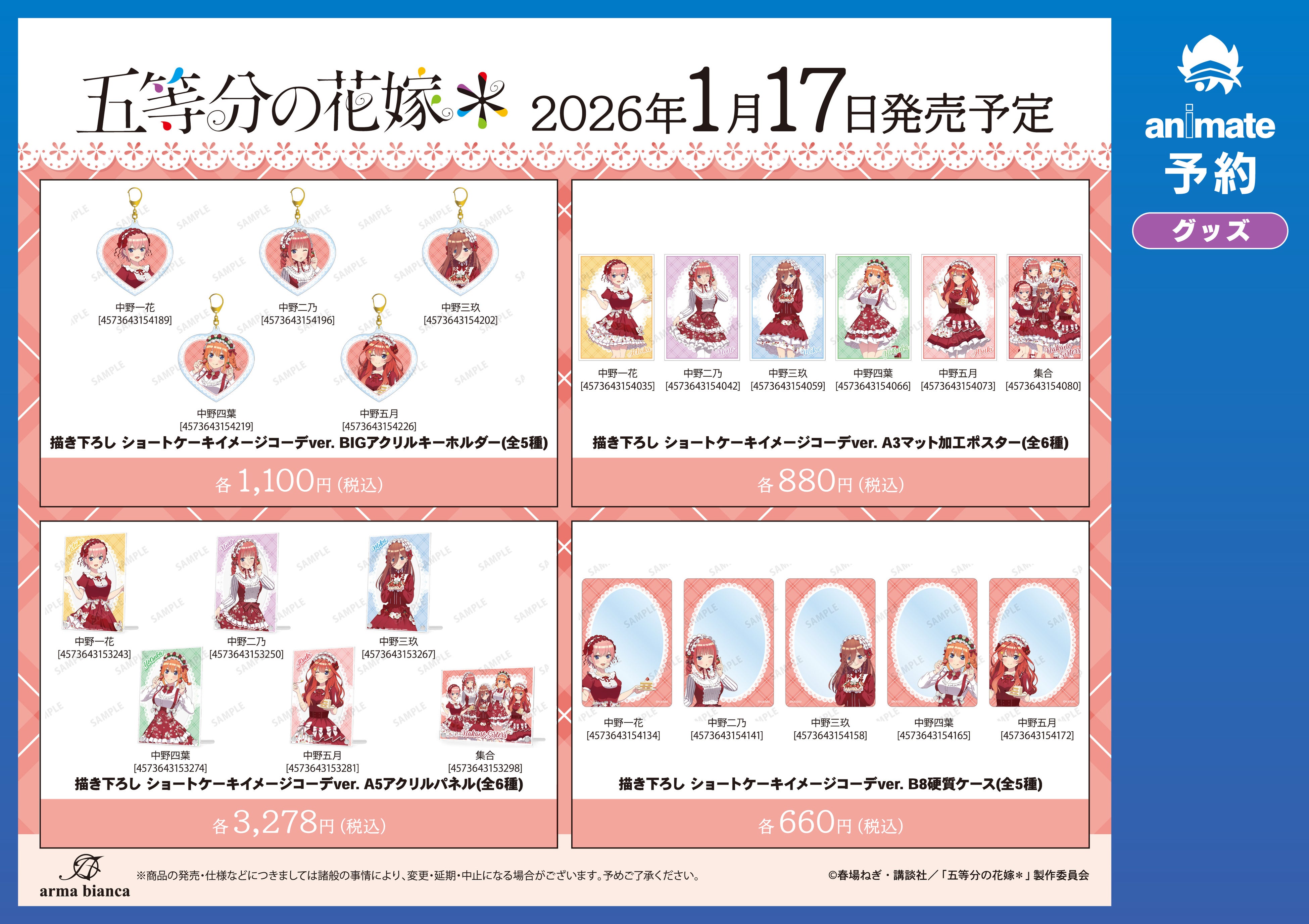 2026年1月17日(土)よりアニメイト対象店舗にて「TVスペシャルアニメ『五等分の花嫁*』アニメイトフェア」の実施が決定いたしました。