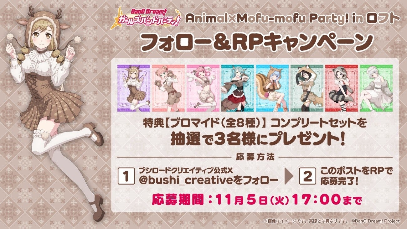 2024年11月6日(水)~2024年1月29日(水)まで、「バンドリ! ガールズバンドパーティ! Animal×Mofu-mofu Party! in ロフト」を開催いたします。