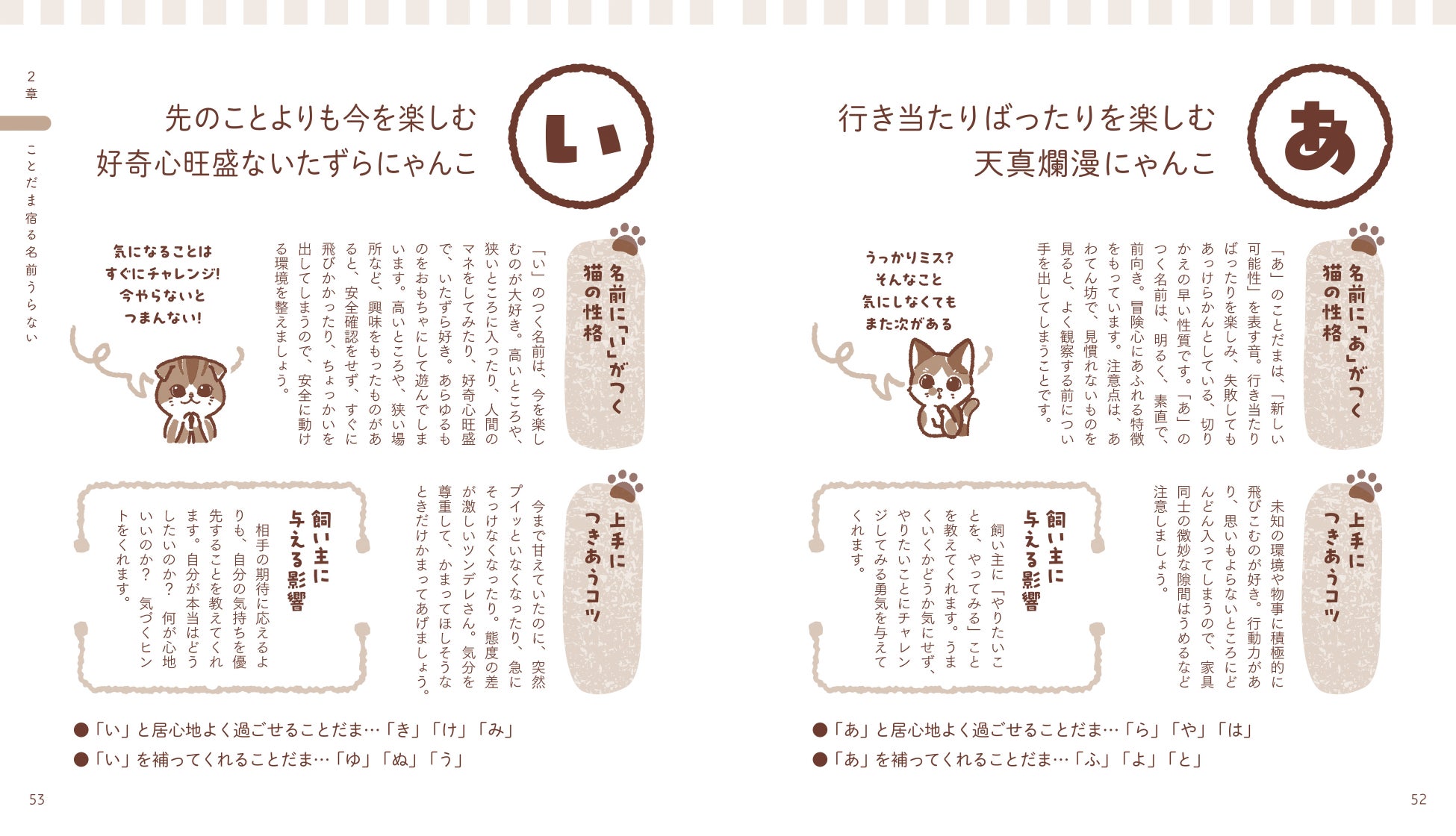 ▲『にゃんこの性格うらない』第2章/名前うらない より