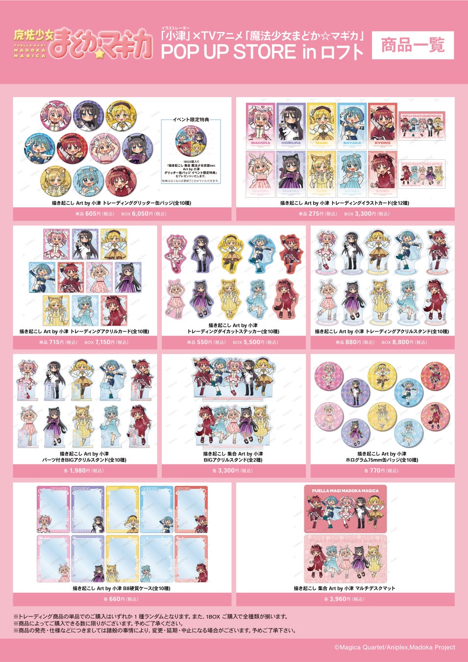 【「イラストレーター 小津」× TVアニメ「魔法少女まどか☆マギカ」POP UP STORE in ロフト内へのご案内について】