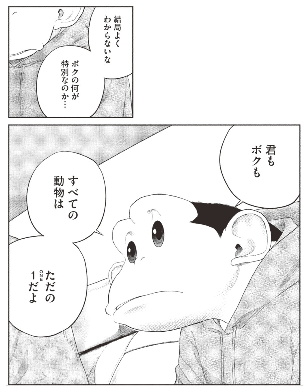 ▶チャーリーが世界の見方を一言で表現した1巻の一コマ。「すべての動物は ただのONEだよ」