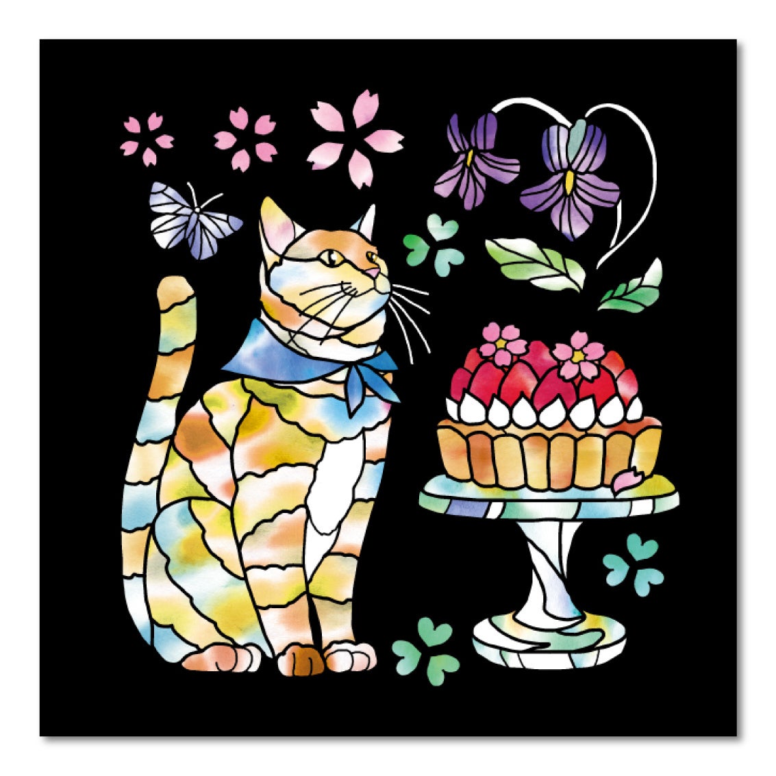 シールを貼って、ステンドグラス風のイラストを完成させるシールパズル。大人気切り絵作家・大橋忍さんの描き下ろしで、思わず飾りたくなる作品が11点作れる。季節のお花とともに、かわいらしい猫が登場します。