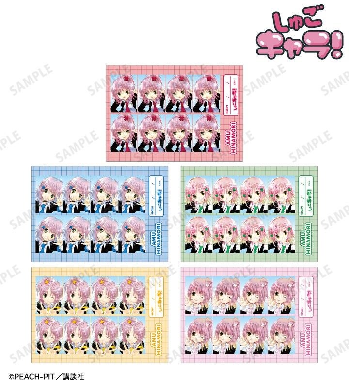 日奈森 あむの表紙イラスト、アミュレットハート、アミュレットスペード、アミュレットクローバー、アミュレットダイヤ、アミュレットエンジェル、月詠 イクト、辺里 唯世、相馬 空海、三条 海里、藤咲 なぎひこの原作カラーイラストを証明写真風のブロマイド5枚セットに仕上げました。