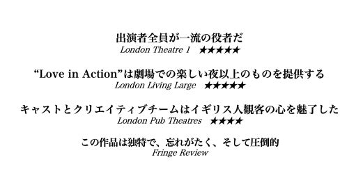 ※舞台『正三角関係』は、ロンドン公演では『Love in Action』という英語タイトルで上演されました。