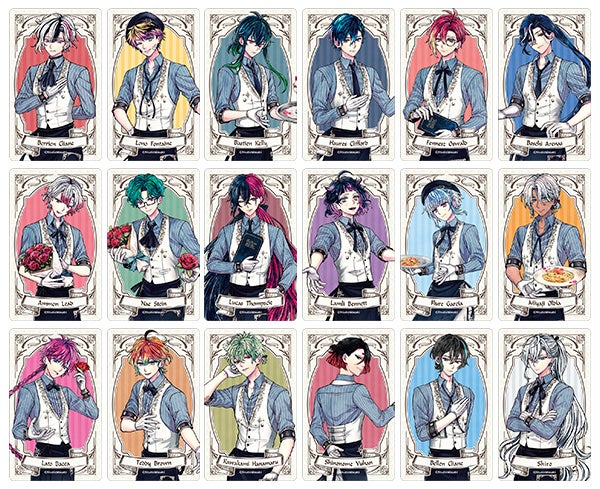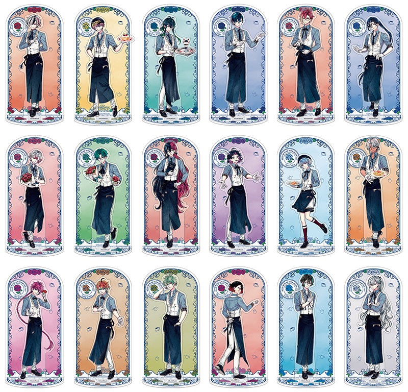 新商品には、カフェ店員に扮した執事たち18人の撮り下ろしビジュアルを使用。「トレーディングクリアカード」や「アクリルスタンド」、「ネックストラップ付カードホルダー」など、さまざまなアイテムをラインナップしています。