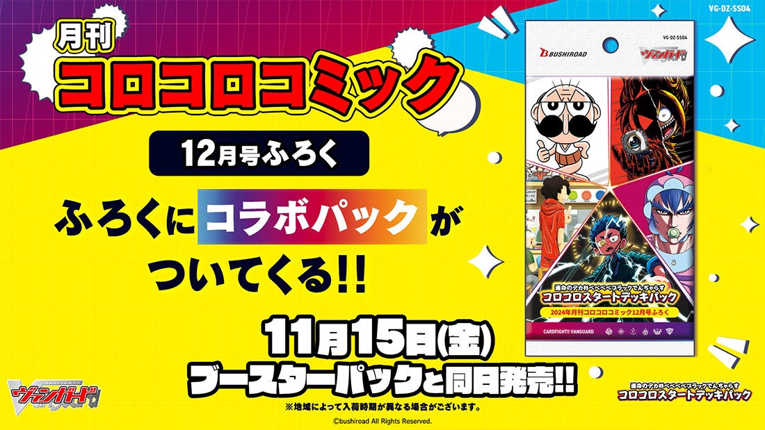 コロコロコミックから人気キャラクターである「なんと! でんぢゃらすじーさん」「運命の巻戻士」「ブラックチャンネル」「デカ杉デッカくん」「ベベベベベイビー」がヴァンガードに参戦!