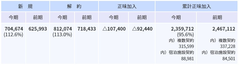 ※2:宿泊施設の客室で視聴するための宿泊施設事業者との契約については、視聴料金を個別に定めており、当該宿泊施設における契約客室の累計正味加入件(室)数は、月末累計正味加入件数に含めております。