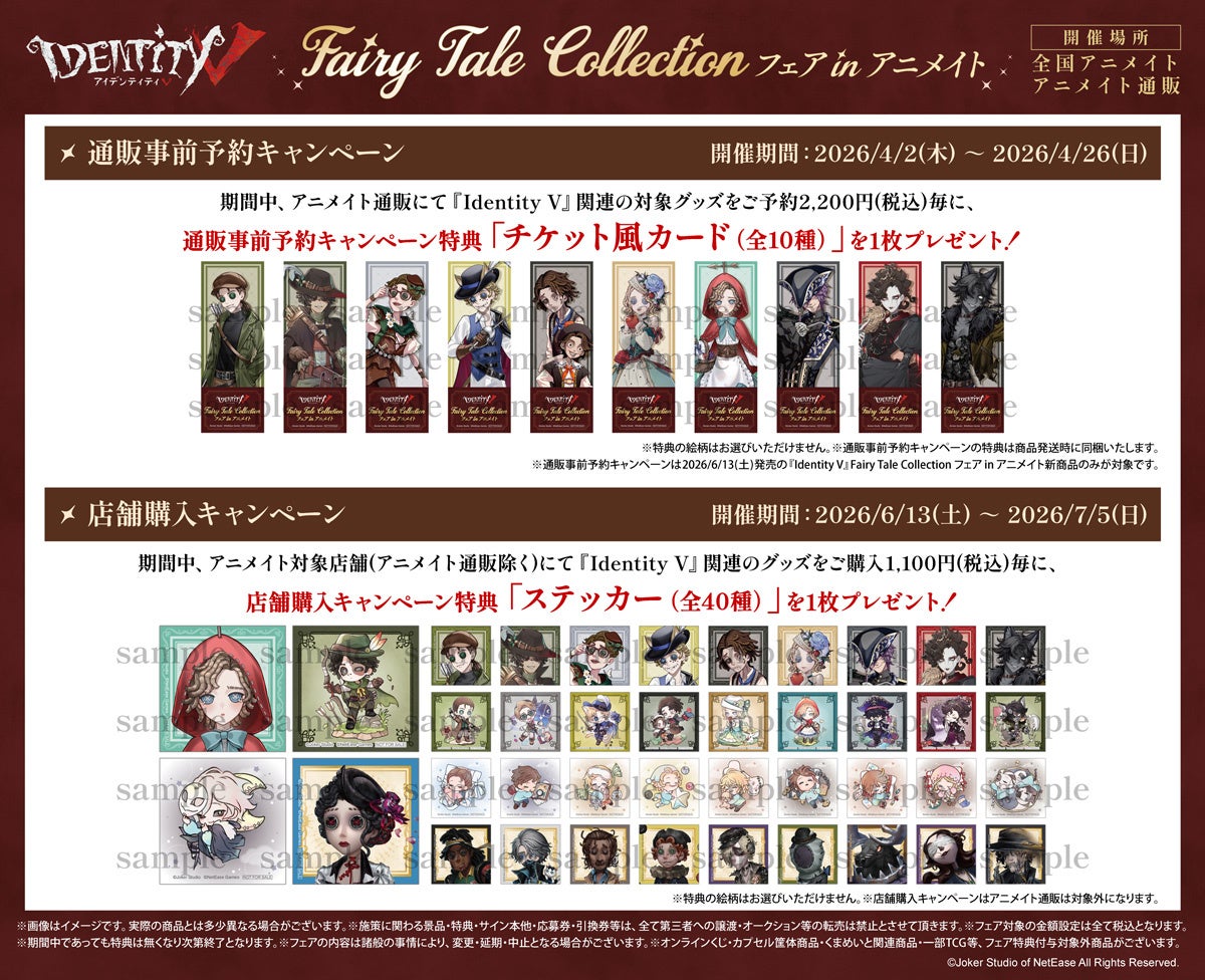 ※通販事前予約キャンペーンは2026/6/13(土)発売の『Identity V』Fairy Tale Collection フェア in アニメイト新商品のみが対象です。