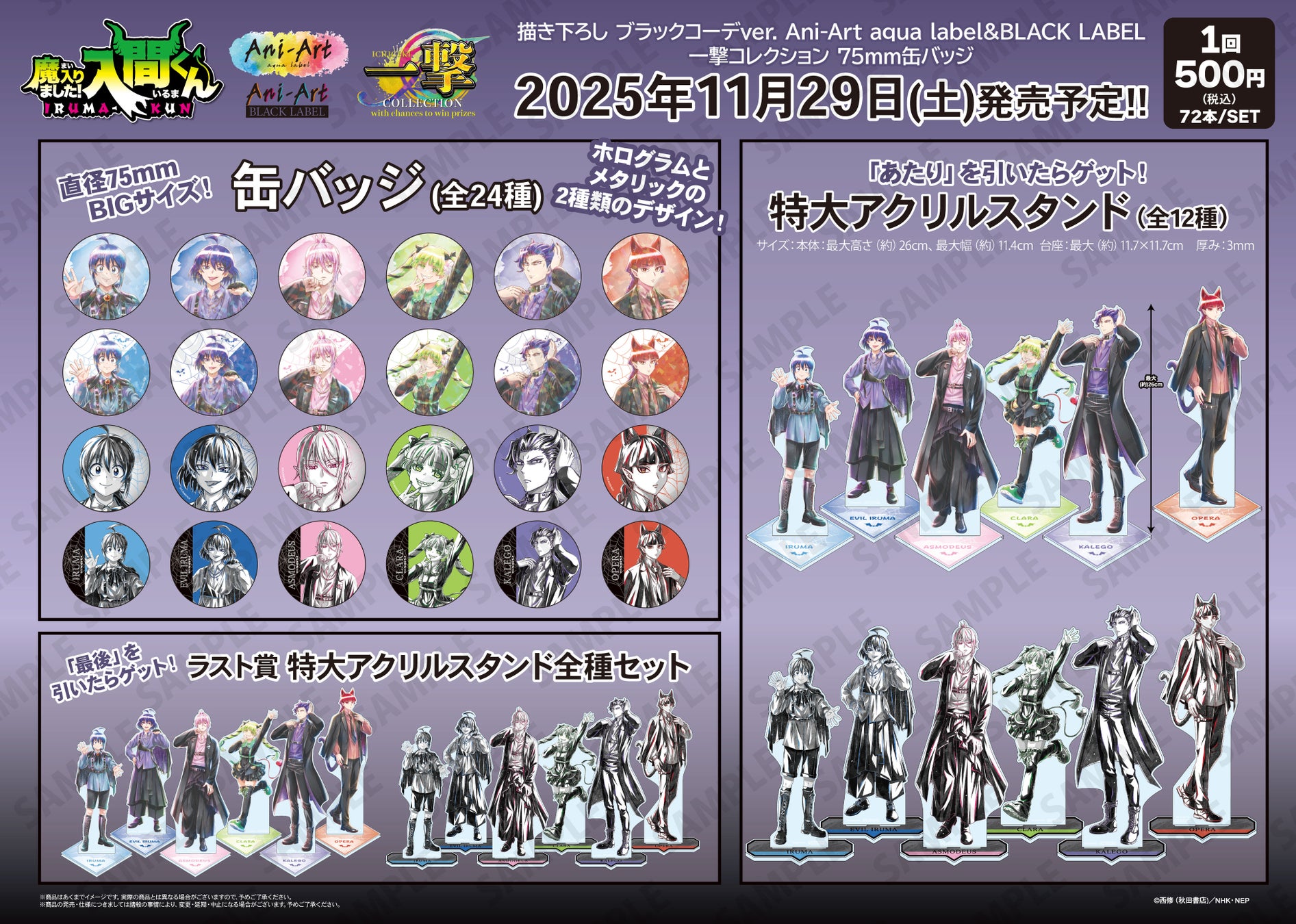 漫画・アニメのオリジナルグッズを販売する株式会社アルマビアンカ(本社:東京都中野区、代表取締役:坂井智成)は、この度、『アニメ「魔入りました!入間くん」』の当たり付き一撃コレクション 75mm缶バッジを発売いたします。