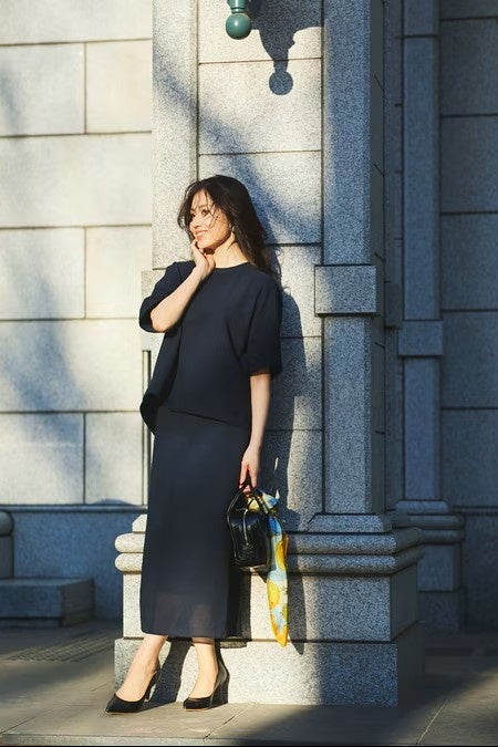 【ミモレストア】ミモレブロガー・山根亜希子さんコラボ第3弾。「THE CLASSE(ザ クラス)」から“究極の大人ネイビー“のブラウスとスカートが登場!