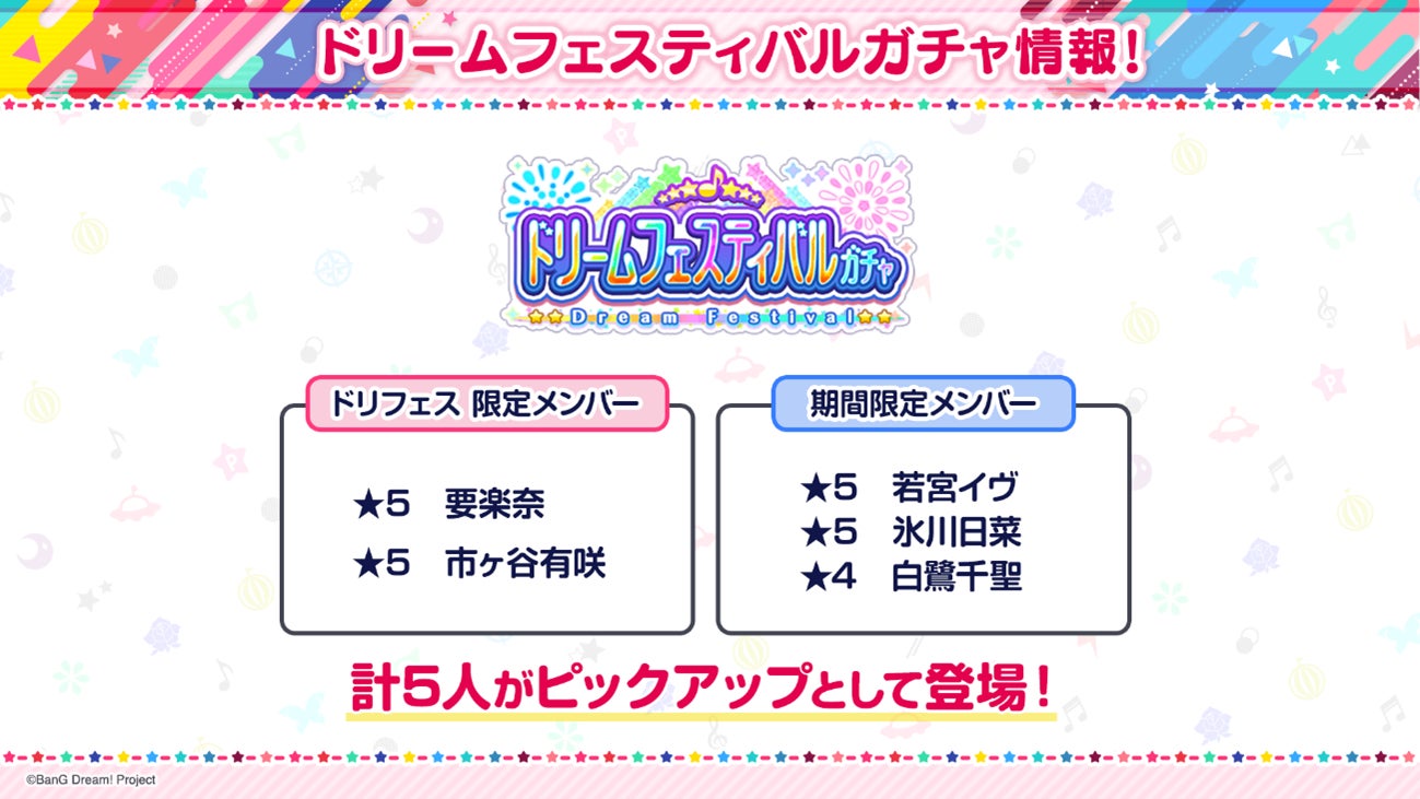 11月30日(土)15時より「ドリームフェスティバルガチャ」の開催が決定いたしました。今回のドリフェス限定メンバーとして要楽奈、市ヶ谷有咲が登場いたします。