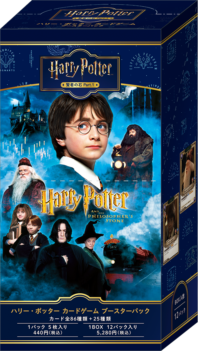 映画第1作『ハリー・ポッターと賢者の石』の名シーンを中心に収録。お気に入りのキャラクターや呪文を集めて、自分だけのデッキを強化しよう。