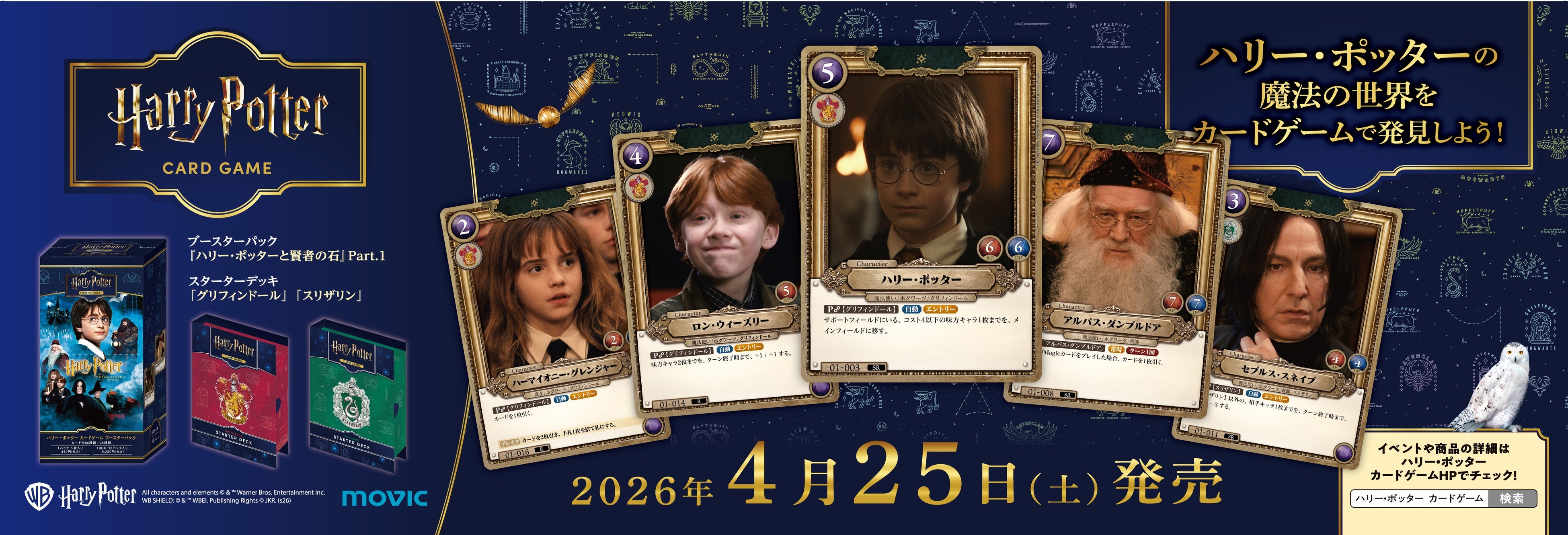株式会社ムービック(本社:東京都豊島区)は、ワーナーブラザース・ディスカバリー グローバル・コンシューマープロダクツとのパートナーシップのもと、映画『ハリー・ポッター』シリーズ トレーディングカードゲームを2026年4月25日(土)に発売いたします。