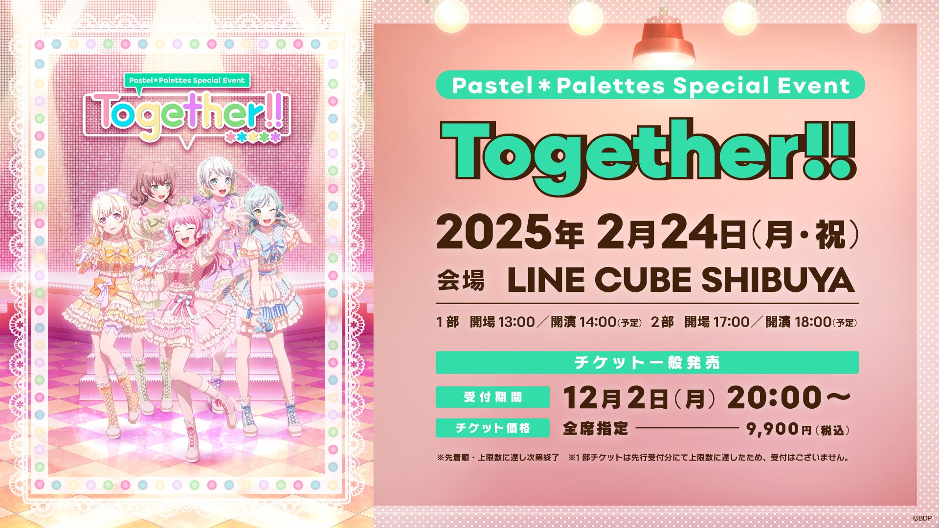 2025年2月24日(月・祝)に、LINE CUBE SHIBUYAにて開催予定のPastel*Palettes Special Event「Together!!」について、イベントキービジュアルを公開いたしました。