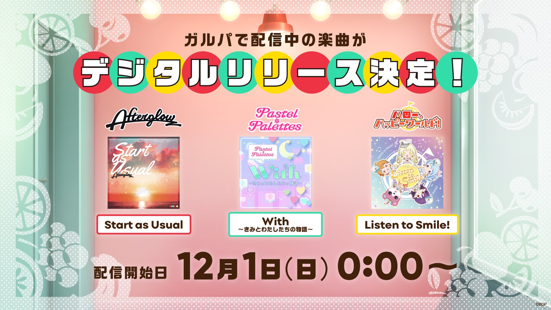 【新情報】ガルパで配信中のAfterglow・Pastel*Palettes・ハロー、ハッピーワールド!の楽曲がデジタルリリース決定
