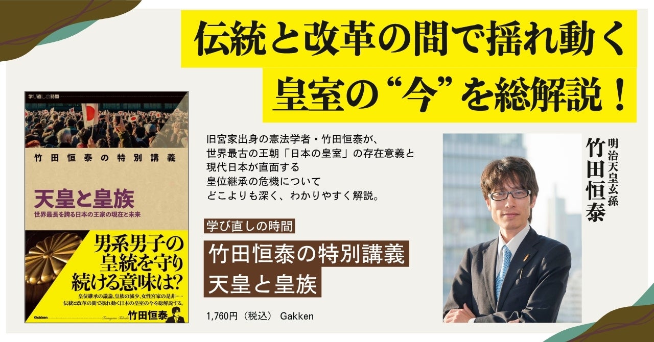 株式会社 学研ホールディングス(東京・品川/代表取締役社長:宮原博昭)のグループ会社、株式会社 Gakken(東京・品川/代表取締役社長:南條達也、以下Gakken)は、2025年10月2日(木)に「学び直しの時間」シリーズの最新刊『竹田恒泰の特別講義 天皇と皇族』を発売いたしました。