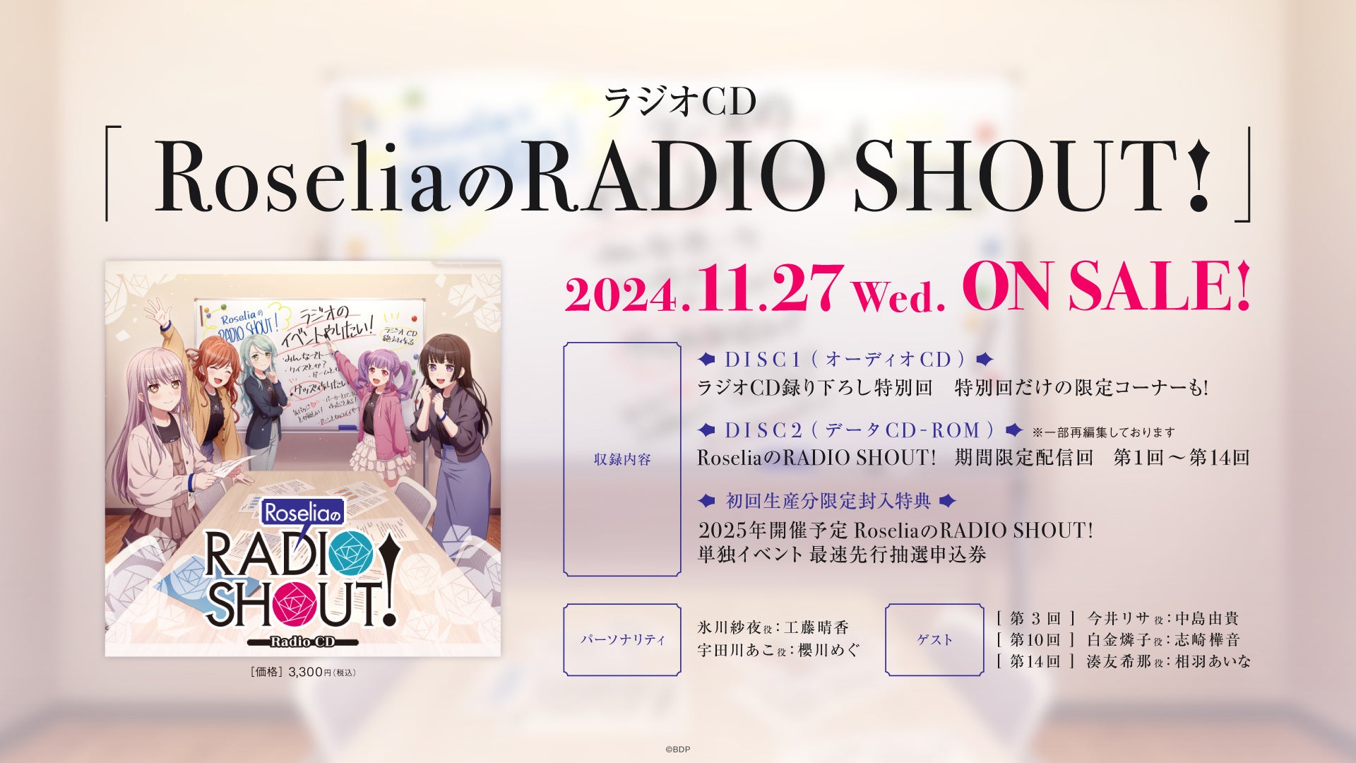 響ラジオステーションにて、隔週金曜日17時より配信中の「RoseliaのRADIO SHOUT!」のラジオCDが好評発売中です。
