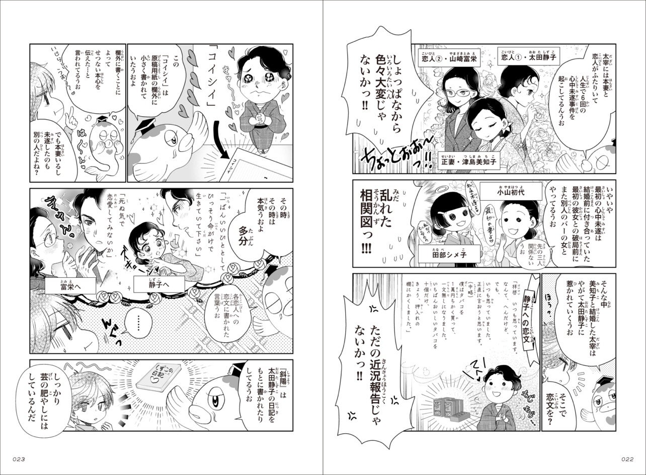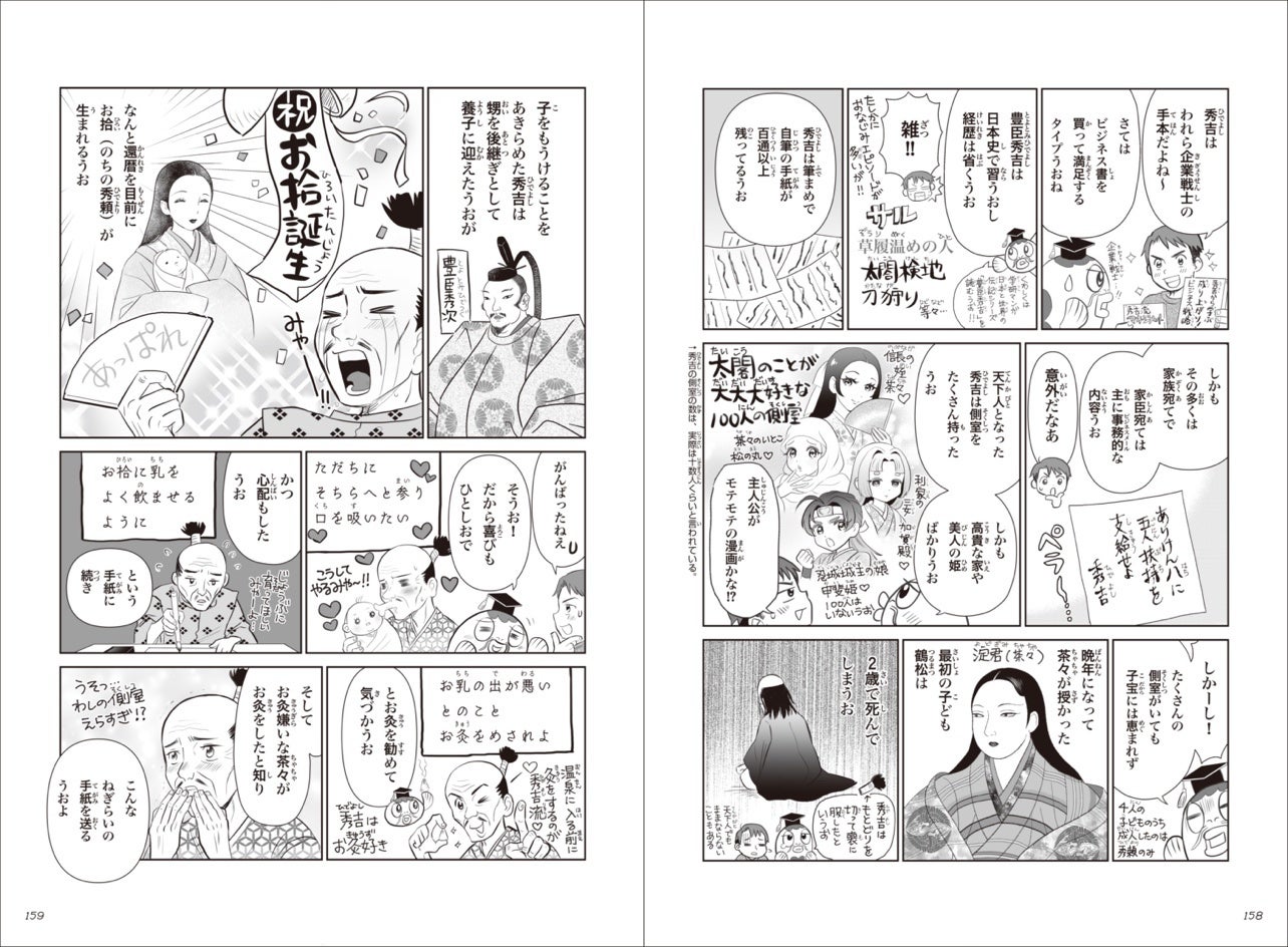 本書では、日本の偉人23人が登場。戦国武将の武田信玄や豊臣秀吉から、明治の文豪、夏目漱石や森鷗外、歌人の与謝野晶子など、さまざまな時代の偉人を取り上げました。恋文という究極のプライベートから垣間見える偉人の生の姿をマンガで面白く紹介しています。また、それぞれに解説ページがあり、恋文だけでなく、偉人の生涯を知ることができます。