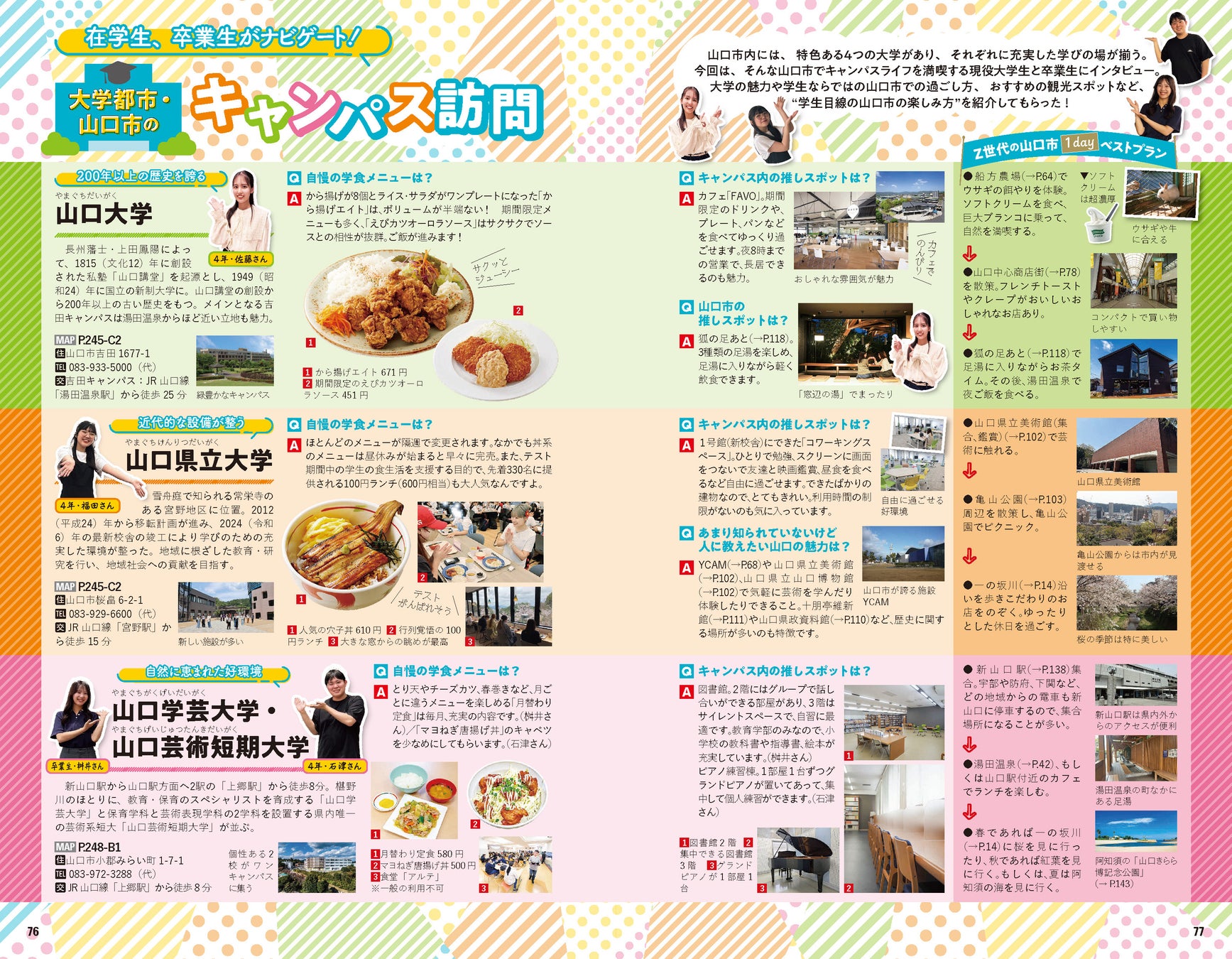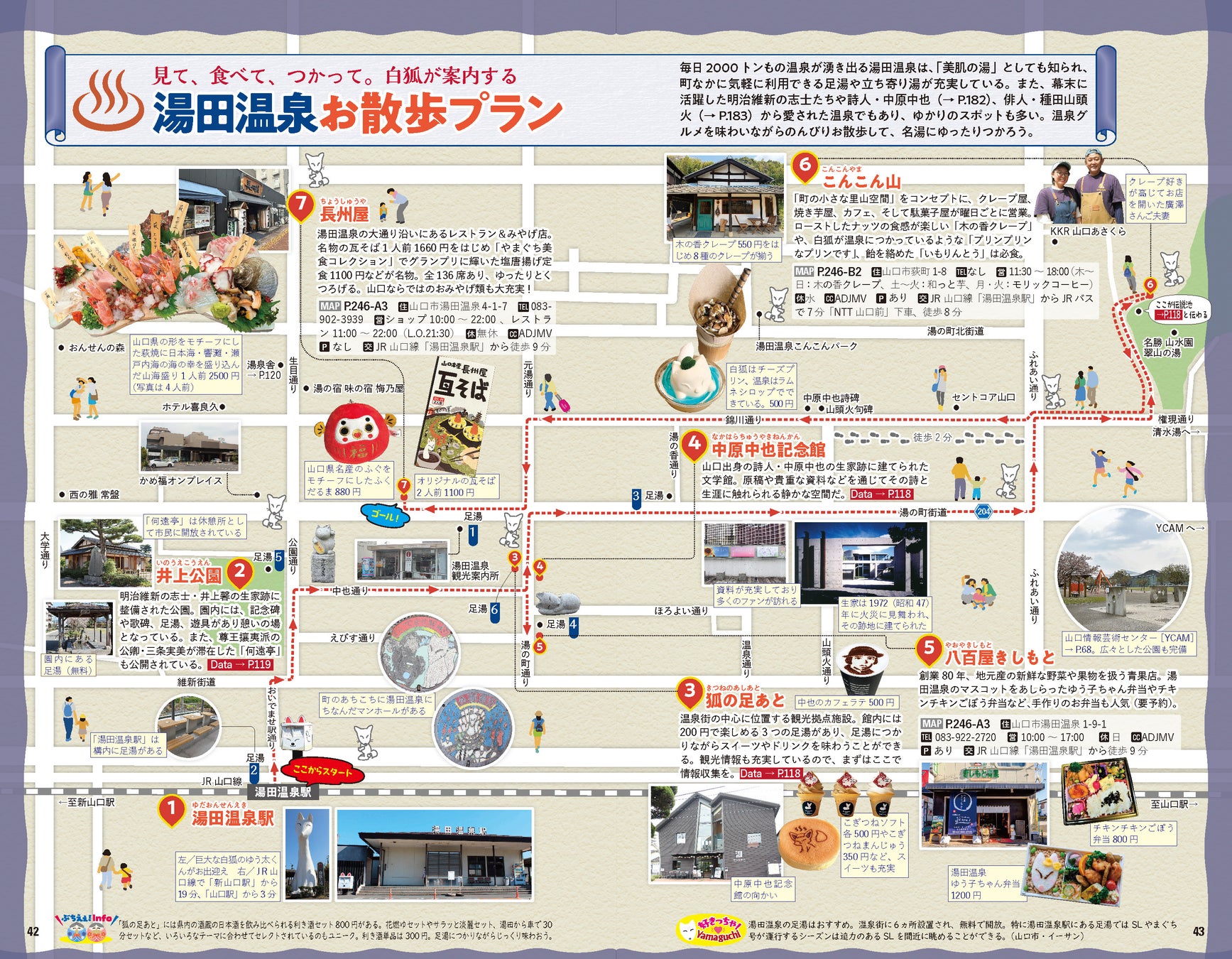 おもな見どころ/イチ推しグルメ/パークロードでアート散歩/湯田温泉の宿/ホタルが美しい町・山口へ/歴史ある鋳銭司エリアへ/重源の郷/イチ推しグルメほか