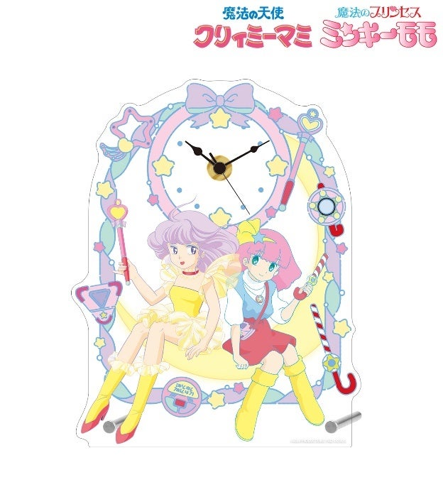 クリィミーマミ、ミンキーモモ、変身アイテムのモチーフをデザインしたアクリルスタンド時計です。