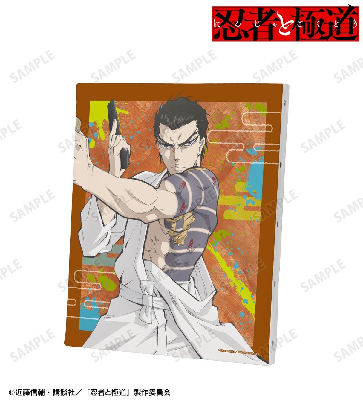TVアニメ『忍者と極道』のキャンバスボード、マルチデスクマット、缶バッジ2個セット、グリッターアクリルキーホルダーなどの受注を開始!!アニメ・漫画のオリジナルグッズを販売する「AMNIBUS」にて