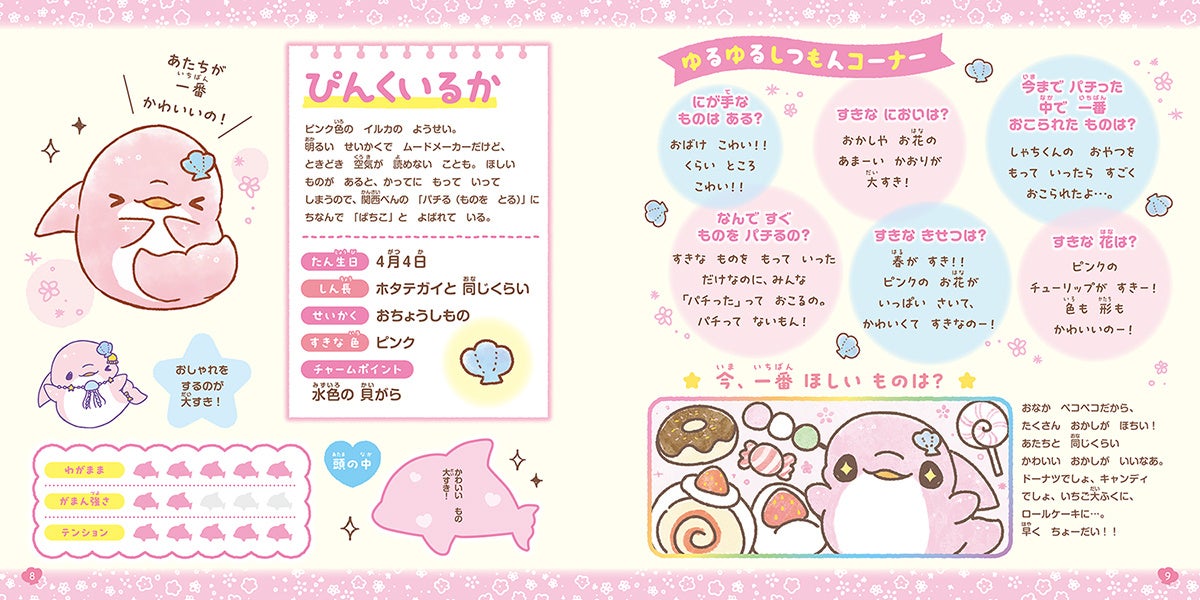 全11キャラクターの詳しいプロフィールはもちろん、相関図や質問コーナー、ショートストーリーなど、ゆるいるかのことをもっと知ることができちゃうページがたっぷり。みいるか&ゆるいるかファン必携の一冊です。