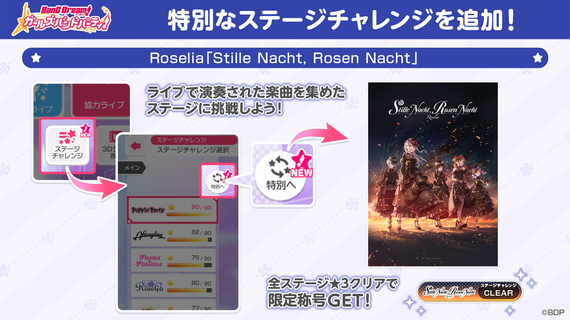 【新情報】「ガルパ」にて、ライブで演奏した楽曲を集めた特別ステージが、ステージチャレンジ機能に追加!