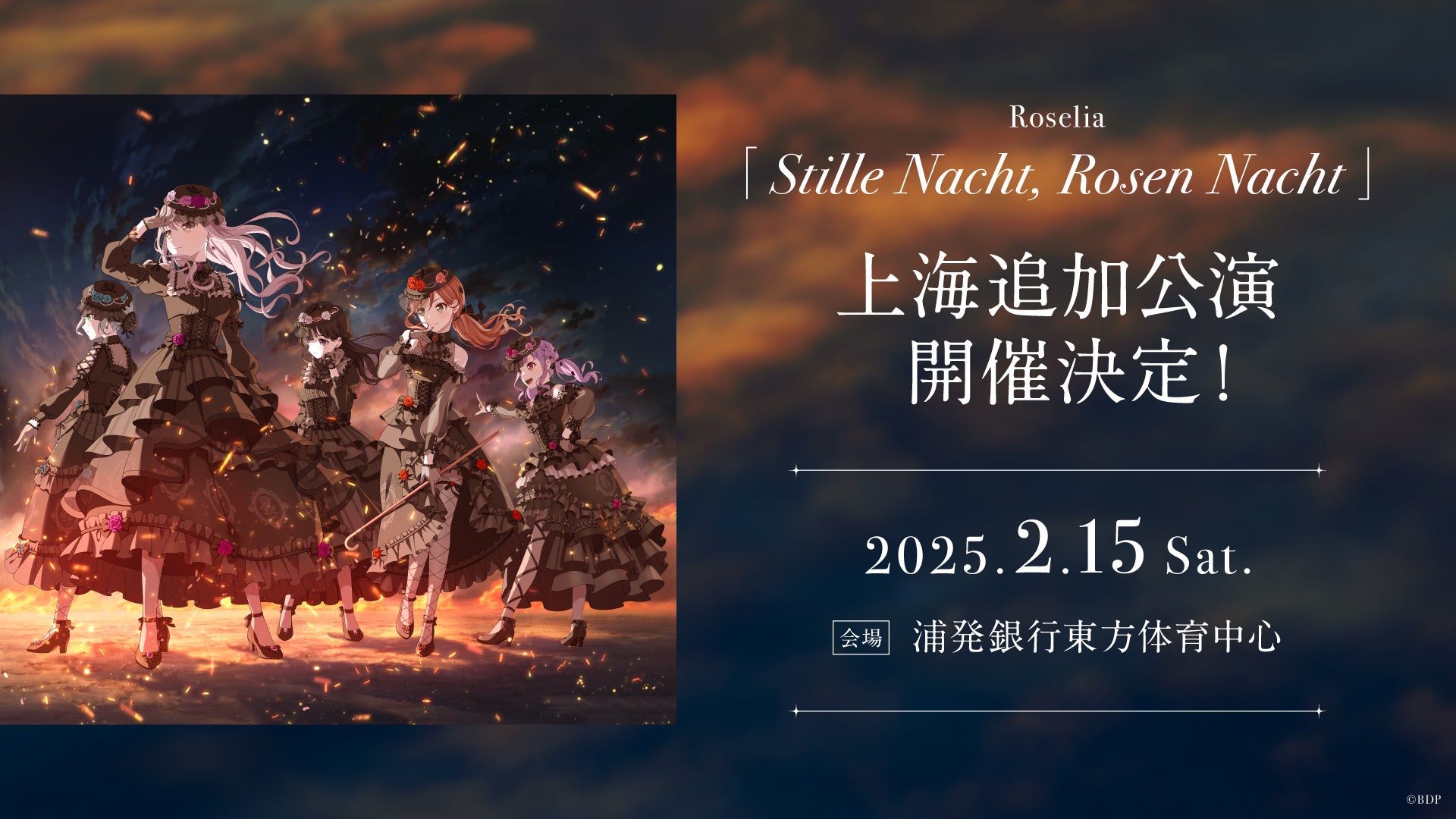 2025年2月15日(土)に浦発銀行東方体育中心にて、Roselia「Stille Nacht, Rosen Nacht」上海追加公演の開催が決定しました。