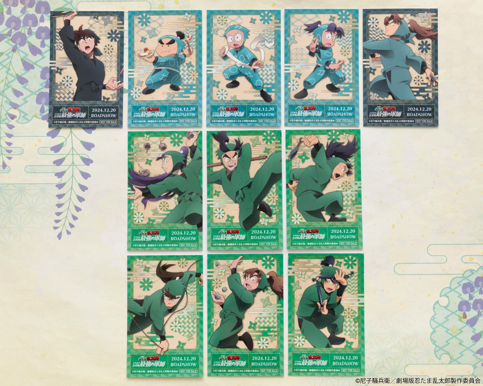 「劇場版 忍たま乱太郎 ドクタケ忍者隊最強の軍師」の対象景品に500円投入する毎に、「劇場版 忍たま乱太郎 ドクタケ忍者隊最強の軍師」に登場するキャラクターが描かれた「チケット風ステッカー(全11種)」の中からランダムで1枚プレゼントいたします。