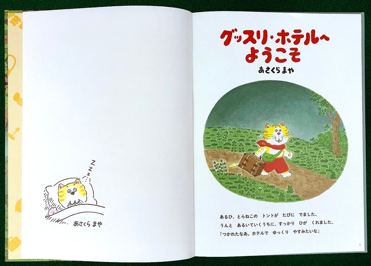 ある日、トントが「グッスリホテル」に泊まりました。誰でもぐっすり眠れるというこのホテル、じつは寝る前にしないといけないことがたくさんあるのです。トントはおふろの間やパジャマの間などに案内され、なかなか部屋にたどり着きません。早く寝たいよう!