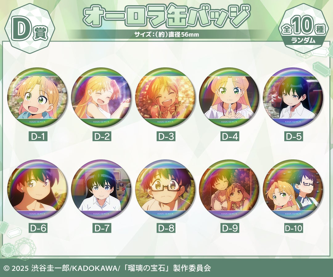 漫画・アニメのオリジナルグッズを販売する株式会社アルマビアンカ(本社:東京都中野区、代表取締役:坂井智成)は、自社オンラインくじサービス「DRAW!DRAW! -ドロー!ドロー!-」にて本日よりTVアニメ「瑠璃の宝石」 オンラインくじを販売いたします!