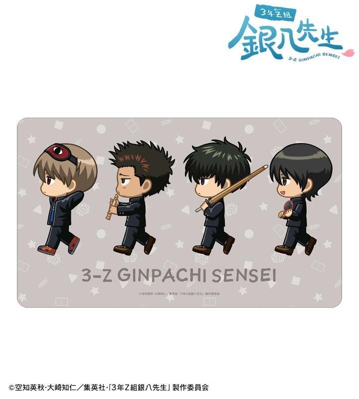 坂田銀八、志村新八、神楽、近藤勲、土方十四郎、沖田総悟、山崎退が歩いているちびキャラを新たに描き起こし、マルチデスクマットに仕上げました。