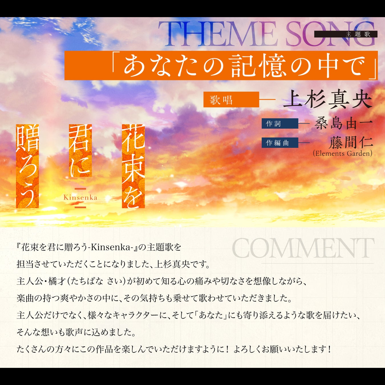 『花束を君に贈ろう-Kinsenka-』の主題歌を担当させていただくことになりました、上杉真央です。