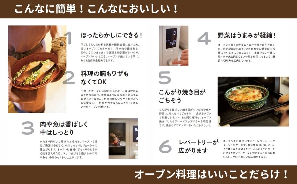 オーブン料理は、難しい技術や特別なコツがなくても、温度と焼き時間さえ守れば失敗知らずの「いいことだらけの調理法」なのです。焼いている間に副菜を作ったり、片づけをしたりできる“ながら調理”にも最適です。