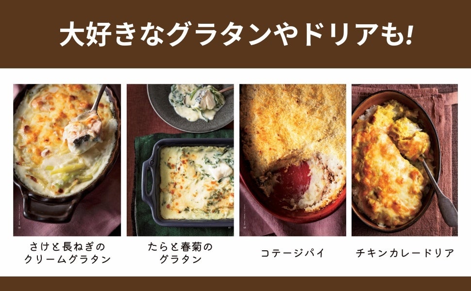 昔から人気のグラタンやドリアはもちろん、手軽に肉や野菜を焼くだけの料理、魚の蒸し焼き、少し手間をかけてでも作りたいごちそうメニューまで、幅広いオーブン料理をご紹介します。