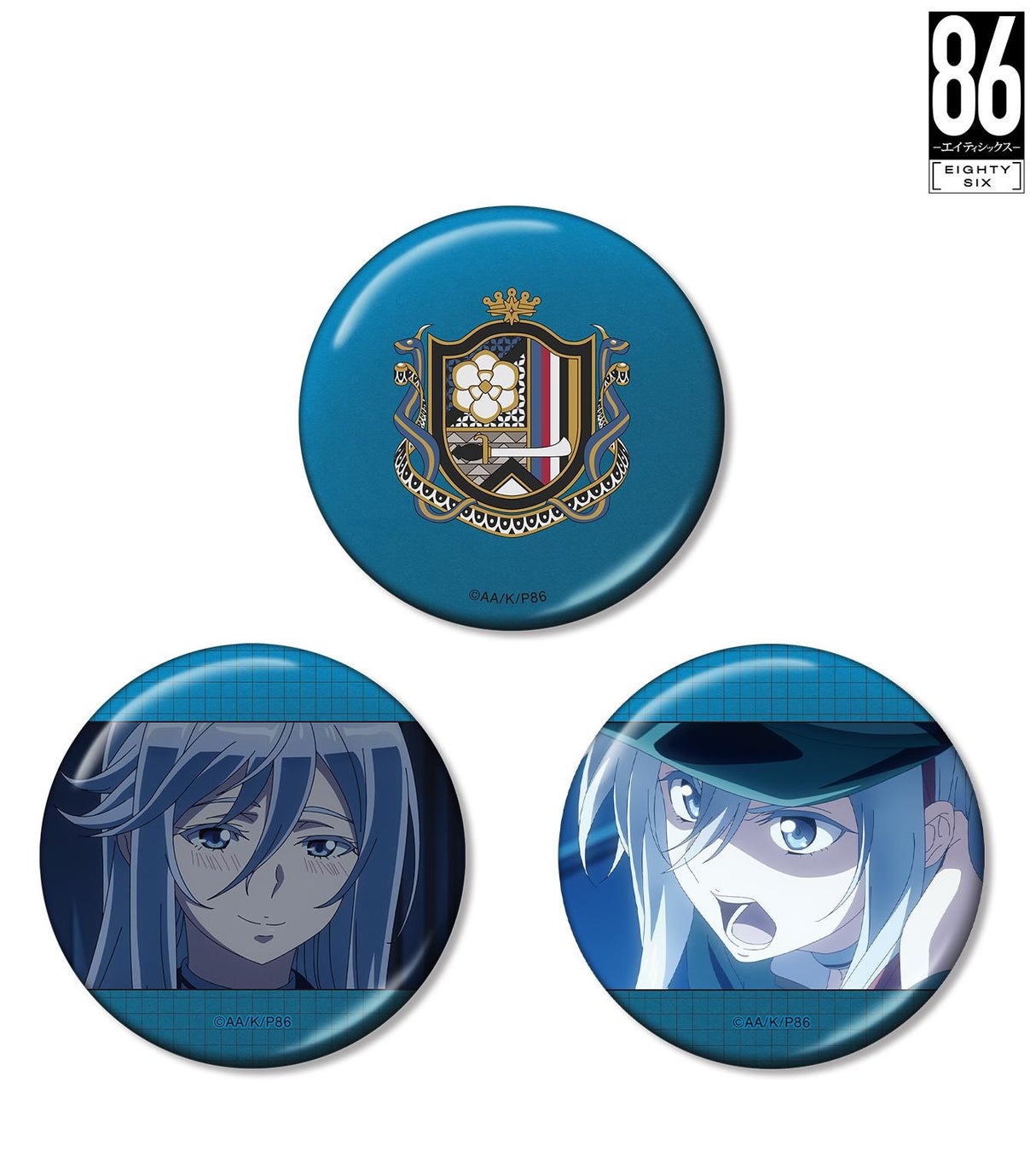 ヴラディレーナ・ミリーゼ、シンエイ・ノウゼン、ライデン・シュガ、セオト・リッカ、アンジュ・エマ、クレナ・ククミラの印象的なシーンとマークをメタリック仕様の缶バッジ3個セットに仕上げました。