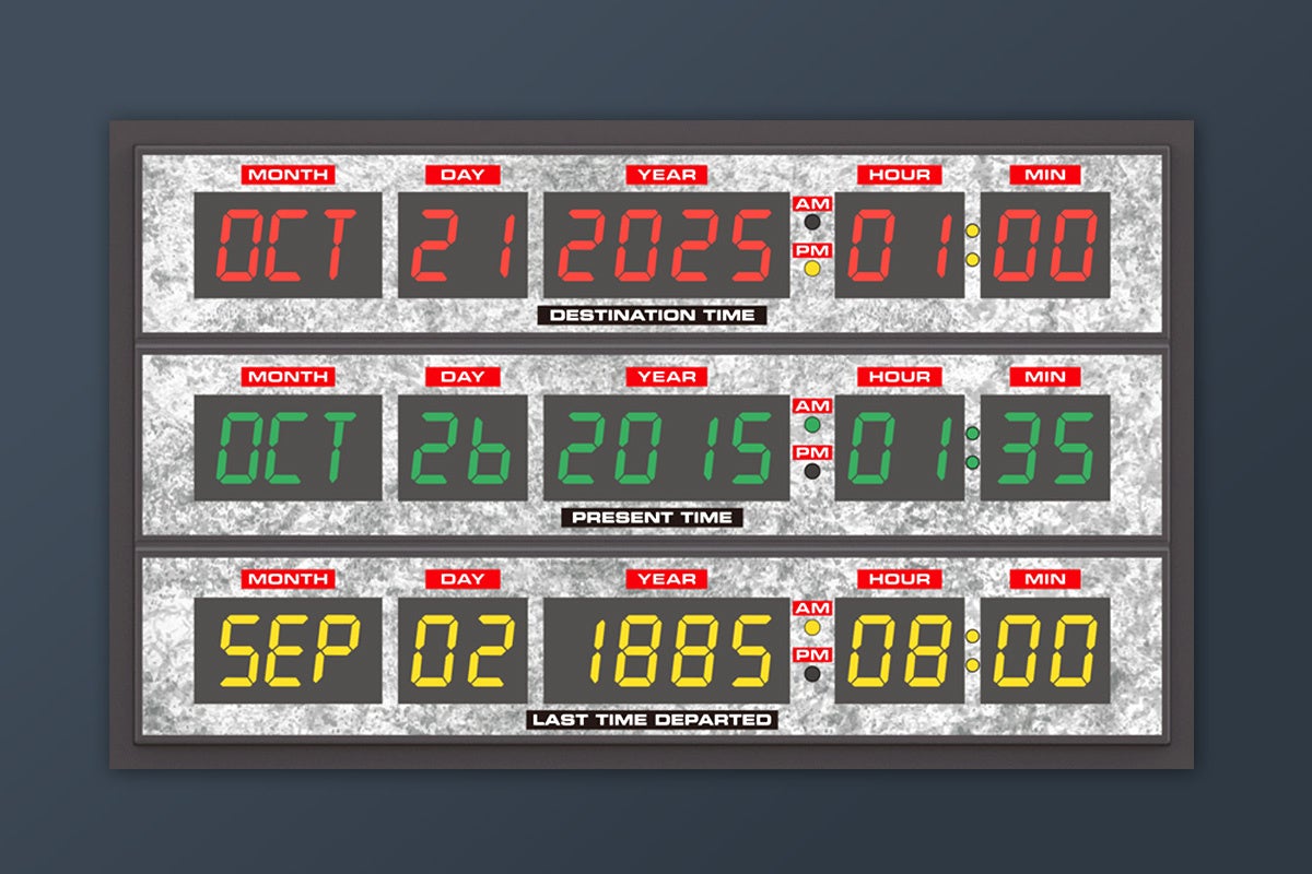 『バック・トゥ・ザ・フューチャー』公開40周年記念! タイムトラベルしたい日付と時刻を設定できる、「タイムサーキット」型時計が発売決定!【予約販売開始】