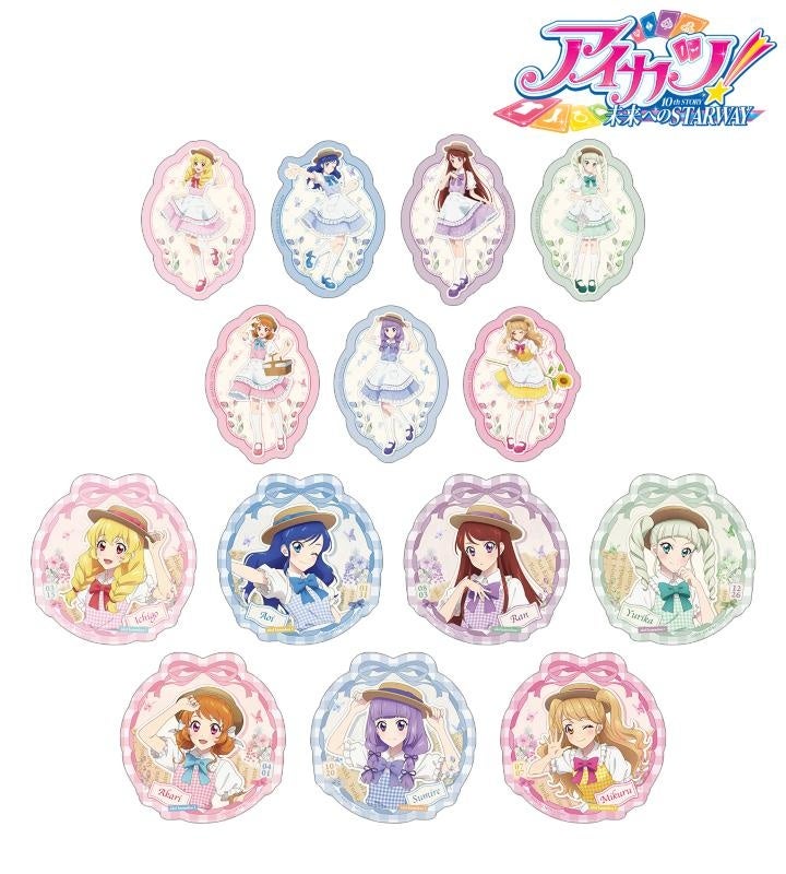 星宮いちご、紫吹 蘭、藤堂ユリカ、大空あかり、氷上スミレ、神崎美月の描き下ろしイラストを、ダイカットのステッカーに仕上げました。