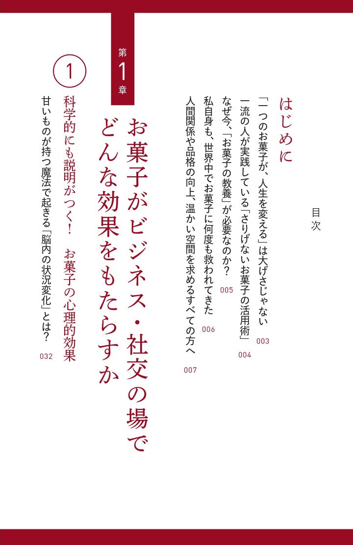 本書は、「教養としてのお菓子」を通して「人間力」を磨く1冊です。お菓子の歴史や背景、TPOに応じたお菓子の選び方、お菓子の贈り方や渡し方の一工夫などを、実例やエピソードを交えてお届けします。ビジネスシーンだけでなく、お中元・お歳暮や、離れて暮らす家族への手土産についても紹介しています。