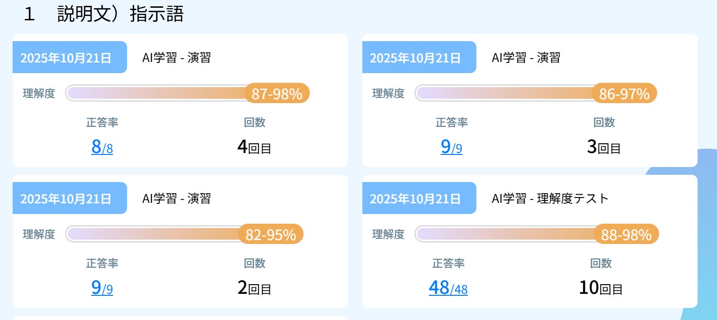 そのうえで、一人ひとりの学習履歴をAIがリアルタイムに学習し、理解度を伸ばせる問題を出題していきます。