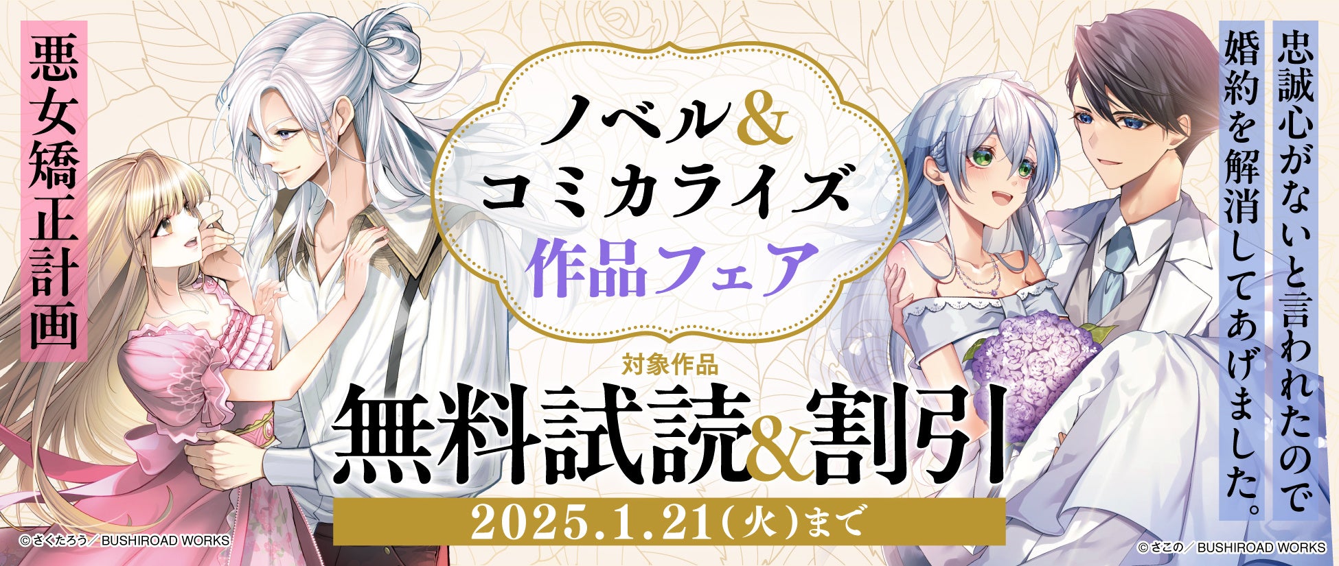 株式会社ブシロード(本社:東京都中野区、代表取締役社⻑:木谷高明)のグループ会社にあたる株式会社ブシロードワークス(本社:東京都中野区、代表取締役社長:新福恭平)は本日1月8日(水)に「ブシロードノベル」レーベルより『悪女矯正計画』の第2巻が発売することをご案内致します。また、発売を記念した電子書籍フェアも実施中です。