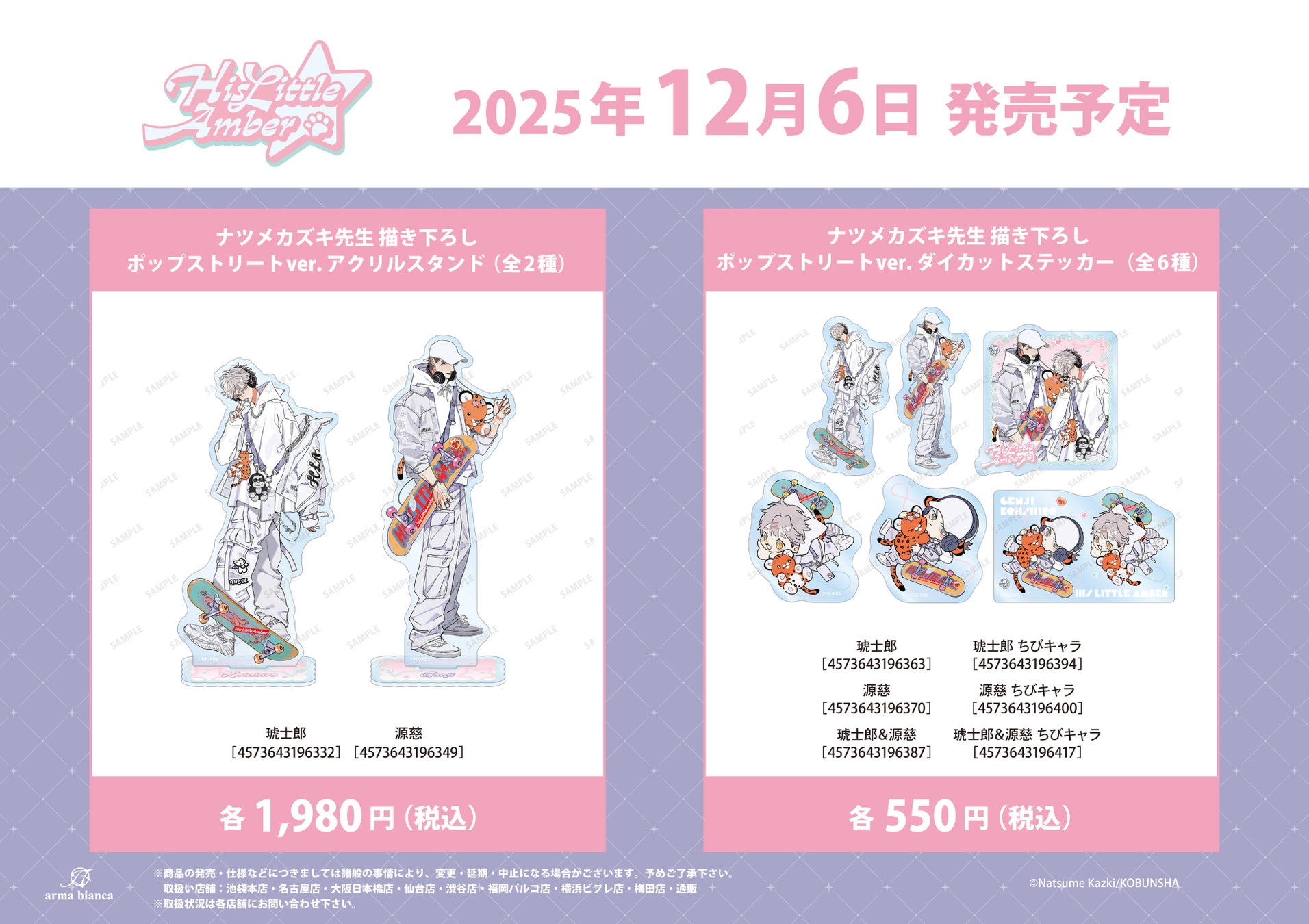 今回のフェアでは、ナツメカズキ先生による『ヒズ・リトル・アンバー』(光文社刊)の「ポップストリート」をコンセプトにした新規描き下ろしイラストを使用した新商品を多数先行販売する他、フェア特典を予定しております。