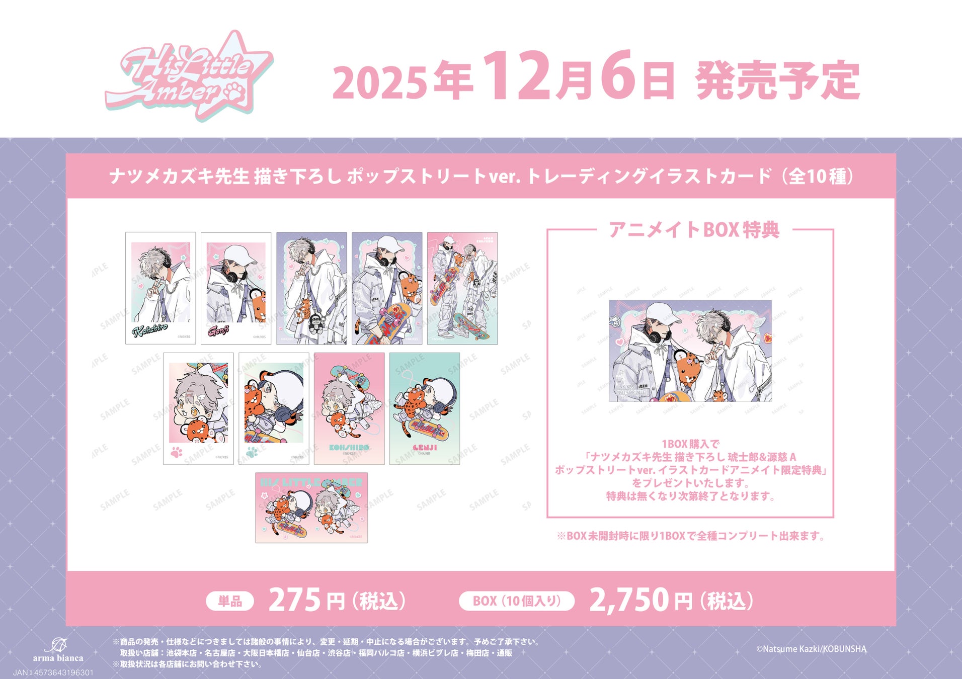 ※12月6日(土)より予約開始予定のECサイト「AMNIBUS」では、BOX購入特典として「ナツメカズキ先生 描き下ろし 琥士郎&源慈 B ポップストリートver. イラストカード AMNIBUS限定特典」を予定しております。