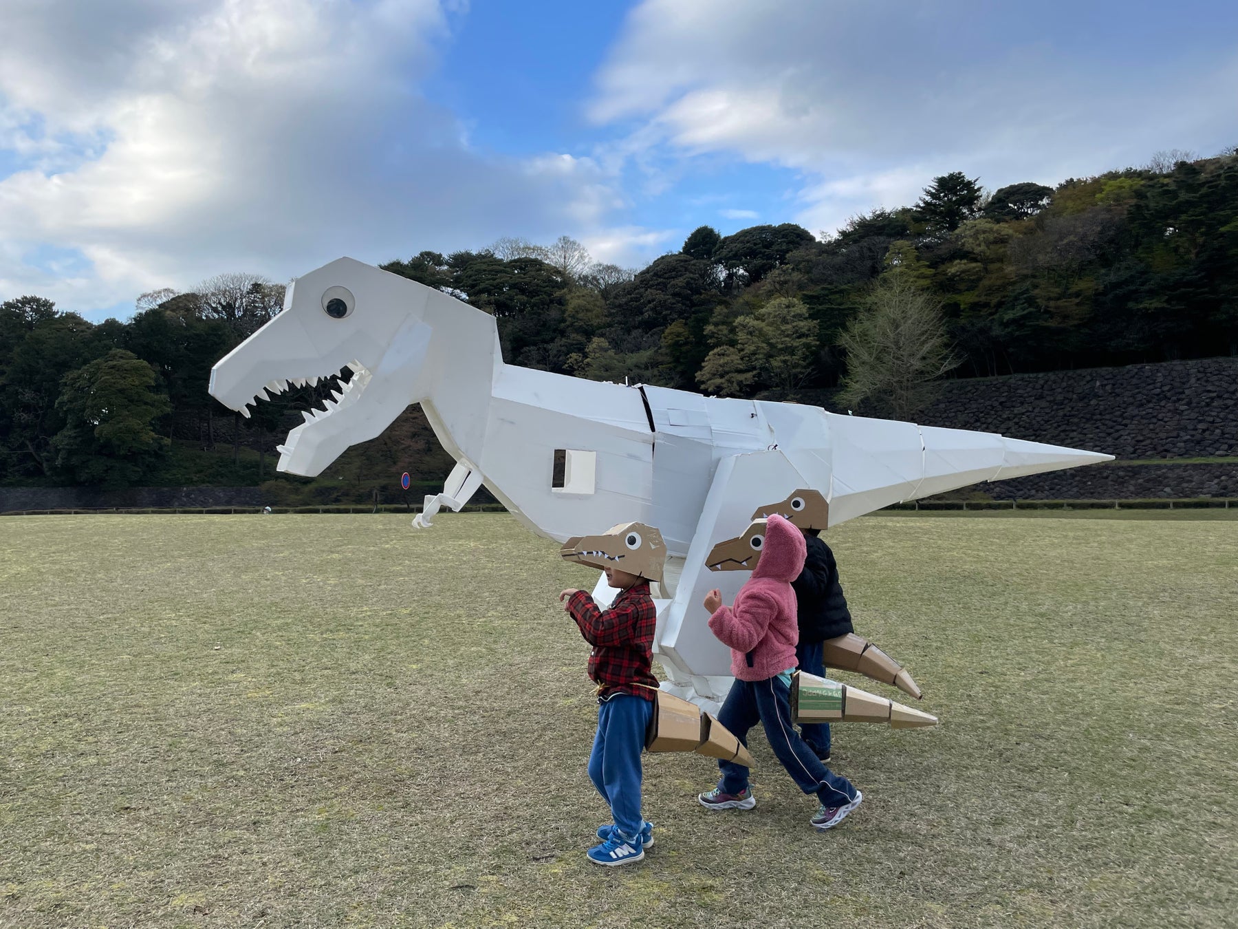 ②ヒゲキタさんの工作ワークショップ「作って恐竜になりきろう! 巨大恐竜シロと大行進!」